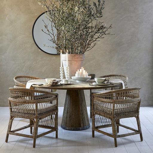 Vollständige Details anzeigenAn diesem Esstisch von Siroko Beach wird das gemeinsame Essen noch gemütlicher. Dieser runde Tisch ist aus aufgearbeiteter Eiche gefertigt. Er ha...