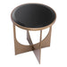 Mit seiner edlen Oberfläche in gebürsteter Messingoptik und einer facettierten Tischplatte aus schwarzem Glas wirkt der Tisch schlank, modern und elegant. Dank seiner kompakten Größe eignet sich der Beistelltisch Elegance ideal als stilvolles Akzentmöbel im Wohn- oder Schlafzimmer. Für ein harmonisches Gesamtbild lässt er sich perfekt mit dem passenden Couchtisch und Konsolentisch der Elegance-Serie kombinieren.
