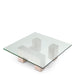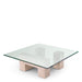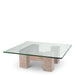 Bringe geometrische Klarheit und organische Schönheit in dein Zuhause mit dem Couchtisch Ikal aus Travertin und Glas.