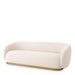 Gemütlich und modern zugleich besticht diese elegant geschwungene Couch durch einen weichen Stoffbezug in Mademoiselle-Beige und ein Gestell in gebürsteter Messingoptik.